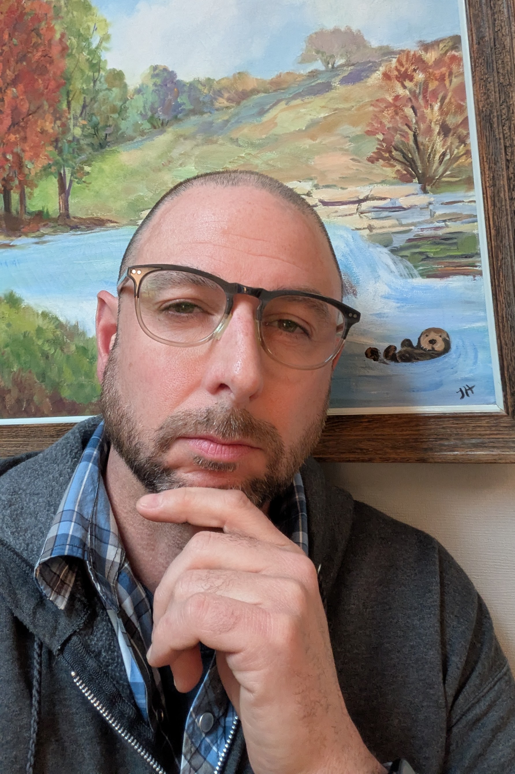 Otter Moutenot. Veteran Otter is a carnivorous aquatic mammal who was raised in 1980s/90s suburban captivity on a diet centered around the Kids in the Hall, Kurt Vonnegut, and Mr. Bungle. He made lots of joyfully collaborative improvisational films and music in his youth, and then life got really serious and heavy like allofasudden. So now a psychotherapist by day and improviser by night, Otter gets to dive to the depths and play in the light. He’s been studying and performing with Big Blue Door since 2018.