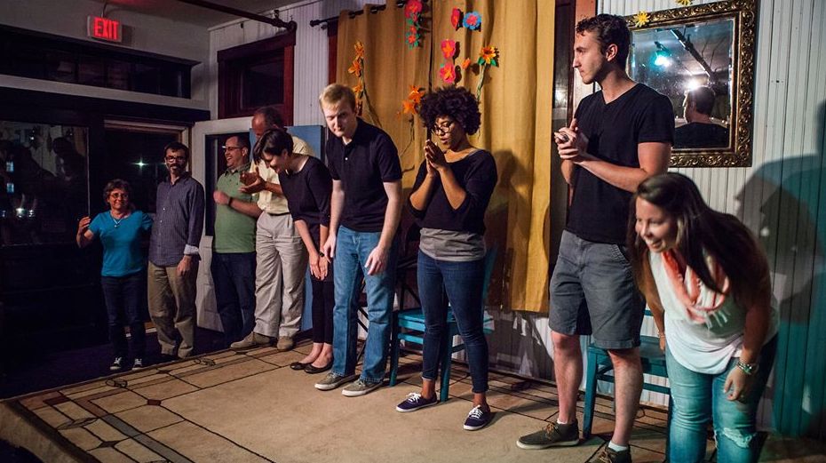 Longform Improvisational Comedy builds completely new, impromptu, unplanned scenes into an entire show, using nothing but a bare stage and maybe a few chairs. The comedy comes not from conditions imposed on the performers, but from the characters and relationships they create. It’s a style of improv that lets you draw on who you are, on what you know, on what you think is funny and interesting. It’s the comedy training of most of the performers on programs like The Office, Parks and Recreation, The Colbert Report and The Daily Show, as well as the comedy schools of Chicago, New York, and Los Angeles. There are three basic improv levels, Improv 1, Improv 2, and Improv 3. Each is fantastically fun on its own yet builds on the knowledge and practices of the previous level. Students who complete all three levels are eligible to perform with our group ensembles in runs of rehearsals and shows. For more on where longform came from click here. For more on the difference between longform and other improv click here. Big Blue Door’s improv curriculum was developed from the Magnet Theater training system created by Armando Diaz, and additionally inspired by many of New York’s best teachers at Magnet, Upright Citizens Brigade, and elsewhere, including Louis Kornfeld, Mark Grenier, Megan Gray, Zach Woods, Russ Armstrong, and Shanon O’Neill. For more info email us at info@bigbluedoor.org